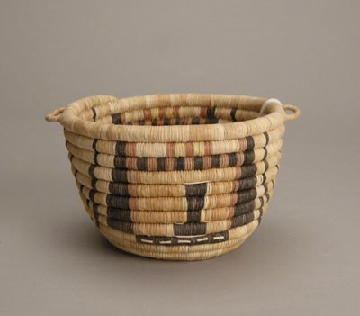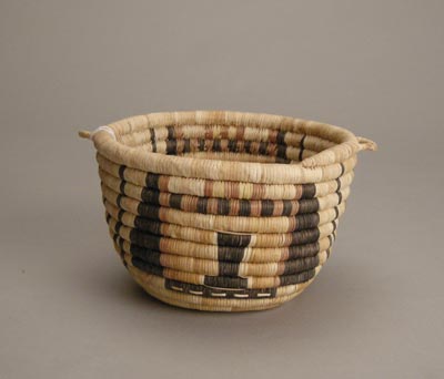 A Hopi coil basket with the iconic Crow Mother Kachina face made c.1920-30 in very good condition. Measures 6″ diameter. A great addition to any collection of traditional Hopi artwork.