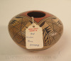 A great example of traditional Hopi pottery by Elva Nampeyo (1926–1985) featuring the “bat wing” variant of the iconic Migration design, an eye-dazzling calling-card of the Nampeyo family. Elva Nampeyo was the daughter of master potter Fannie Nampeyo and the grand-daughter of Nampeyo, the matriarch of modern Hopi pottery. This piece measures 3 3/4″ high by 5″ in diameter and includes an original Keams Canyon Trading Post tag. It is clearly signed by the artist. Excellent original condition. An excellent example of traditional pottery at a great price.