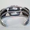 This bracelet measures 5 ¾” with a 1 ½” gap, fitting a 7 ¼” wrist. The max width of 1 ¾”.
