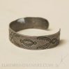 A very old example of classic Navajo silverwork, this silver bracelet is made of hand-hammered ingot silver with elegant stamped accents. It shows excellent patina and dates from the early 1920s. It measures 5 3/4″ around the inside with an additional 1 1/8″ opening for the wrist. A nice piece of Southwestern history.