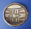 C. 1895, this bowl’s design shows Nampeyo continuing to experiment with ancient influences. Here she is using earlier geometric designs. The lug on the bowl was used for hanging the bowl onthe wall for safety. Excellent original condition. Measures 8 1/4″ in diameter by 3″ high.