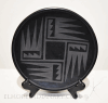 Excellent condition on this older pottery plate by the well-known potter Rose Gonzales. It features a four directional feather design around a square kiva. Measures 8.5″D. Excellent condition, from a California estate. Well-potted, well-fired, well-painted.