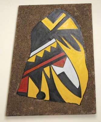 This large oil painting of an actual prehistoric Sikyatki pottery shard from Arizona measures 48″ x 40″. The painting is part of Steve’s Tikkun Olam, the healing of the world, where the absractions of the prehistoric world are enlarged and celebrated. Nice large painting that can be hung in many different ways. The background is sand sifted from the arroyo behind my house.