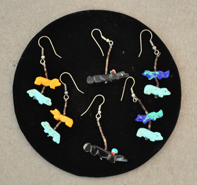 Pair of Zuni Fetish Earrings with turquoise and shell fetishes SOLD