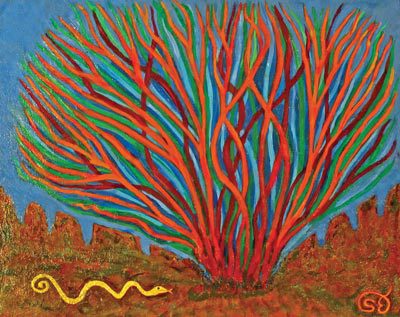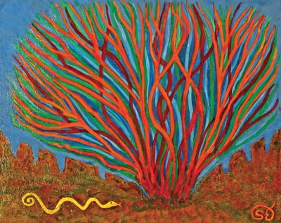 “Tree in the Arroyo I” is one of five paintings in a series. Each measures 16″ x 20″ plus the frame.