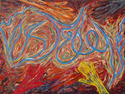 Original oil on canvas titled Writing On The Wall, unframed and signed on the back.
