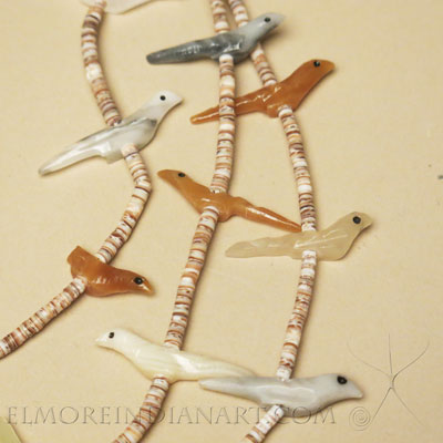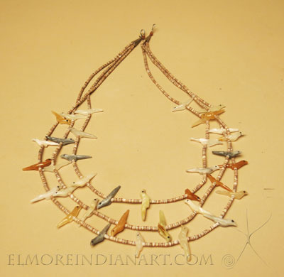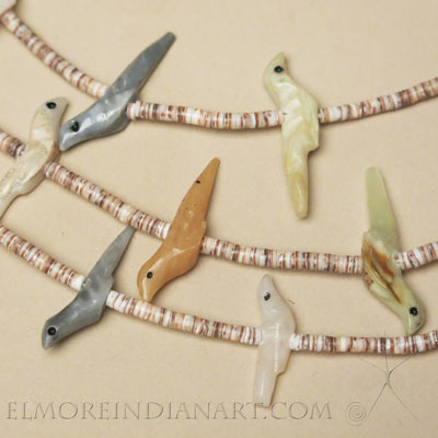 35 birds on 3 Strands, 26″ long. One bird has a small chip. Early example of Zuni fetish necklace. c. 1940.